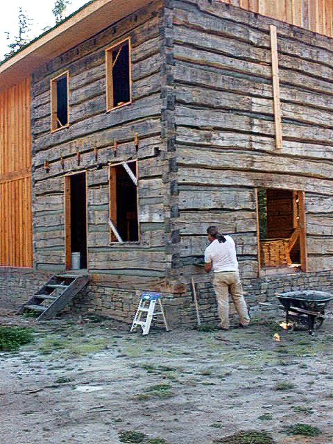 The following images of Daniel and Martha Givens log cabin - Rowan - Canode farmhouse - starting as an occupied farmhouse in Virginia, ending with it rebuilt as a cabin near Troy Montana: